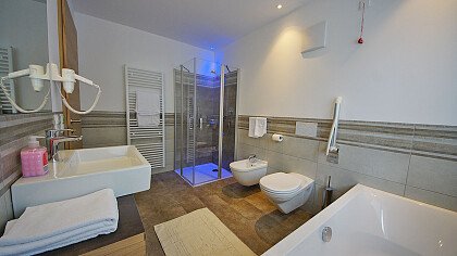 Inoltre: sala TV, bar; deposito sci con scalda scarponi, parcheggio, ampio giardino con parco giochi, calcetto, sdraio, ombrelloni e terrazza.
