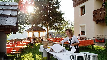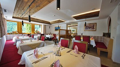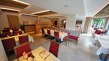Nelle due ampie sale da pranzo con vista sulle maestose Dolomiti, si possono degustare deliziose specialità tipiche e gustosi piatti della cucina italiana e mediterranea a base di prodotti selezionati e genuini provenienti dall’orto. Si organizzano grigliate estive e serate tirolesi una volta a settimana.