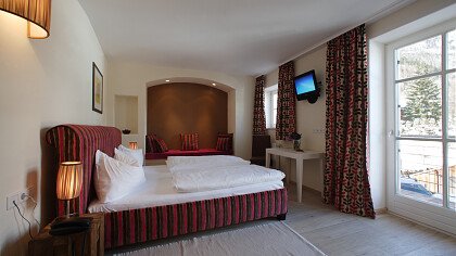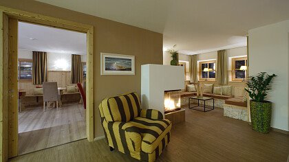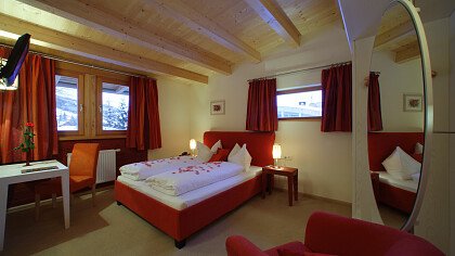 Inoltre: piscina scoperta riscaldata, sauna finlandese all'aperto, giardino, ping pong, parco giochi, campo da pallavolo, skibus, noleggio sci e deposito sci con scaldascarponi.