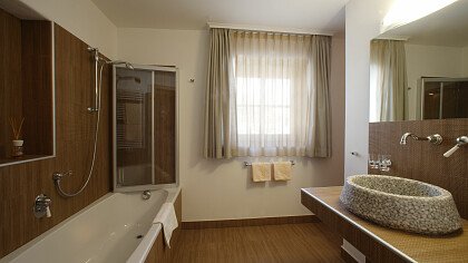 La struttura, di recente costruzione e realizzata con materiali naturali, vanta ambienti molto confortevoli. Le camere, arredate con gusto in legno e una diversa dall'altra per il design e i colori, dispongono di TV satellitare, Wi-Fi, phon e cassaforte. La maggior parte con balcone panoramico. Le stanze di categoria superiore hanno anche una sauna privata.