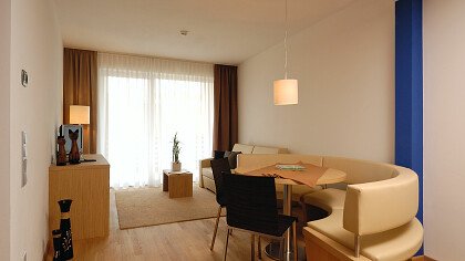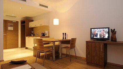 La struttura, con i suoi interni spaziosi, eleganti e moderni, è perfetta per una vacanza di puro benessere fatta di piacevoli momenti di relax. Gli appartamenti da 2 a 6 persone sono dotati di ogni comfort: bagno, angolo cottura, zona giorno e zona notte separate, TV, WLan, cassetta di sicurezza, aria condizionata, radio, telefono, balcone o terrazza.