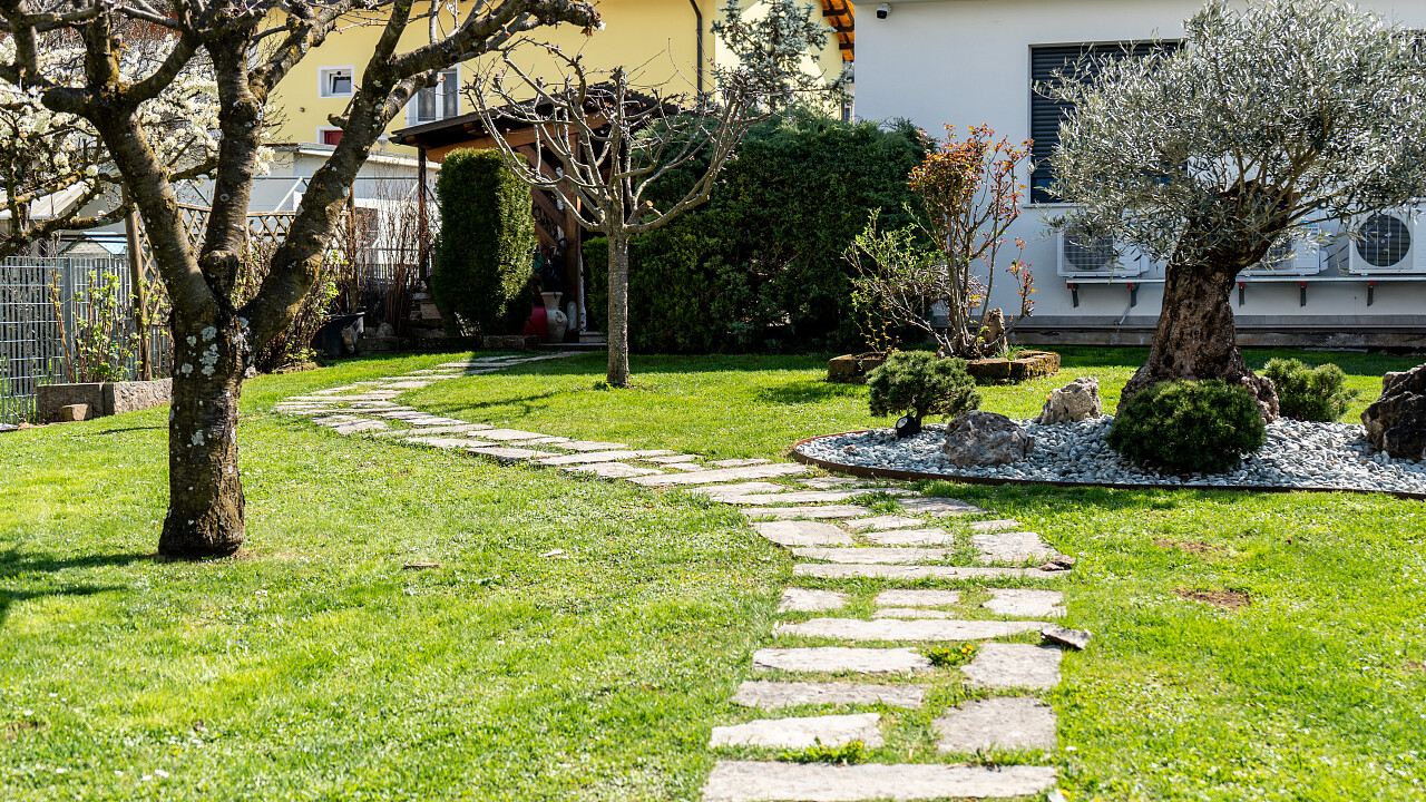 La zona giorno, ampia e luminosa, con cucina attrezzata, invita alla convivialità. All’esterno, il giardino privato avvolge la casa in un abbraccio verde, perfetto per leggere all’ombra, meditare all’alba o semplicemente ascoltare il canto degli uccelli.