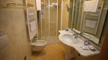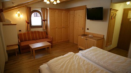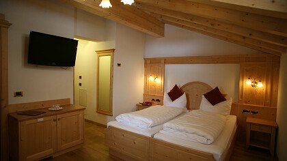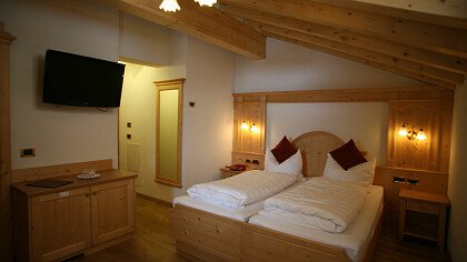 Le accoglienti camere sono arredate con gusto e dispongono di bagno con doccia, frigobar, phon, telefono, Wi-Fi in fibra ottica, cassaforte, TV LCD e, alcune, di balcone con una stupenda vista sulle Dolomiti di Brenta.