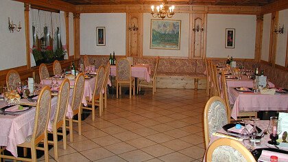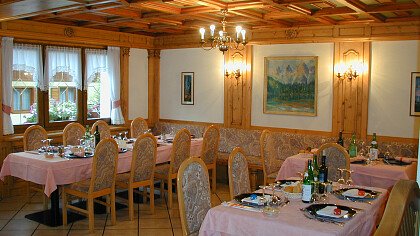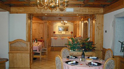 Nella sala da pranzo potrete degustare una squisita colazione, un ottimo pranzo e una deliziosa cena a base di specialità tipiche e italiane, accompagnate da un abbondante buffet di verdure. Si organizzano anche cene a lume di candela con piatti locali.