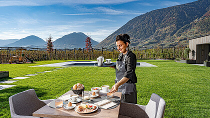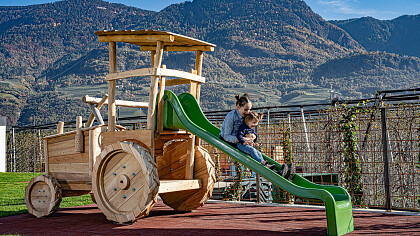 Il nostro maso è situato in mezzo ai campi di mele, peró Merano è raggiungibile in meno di 10 minuti con la macchina.
