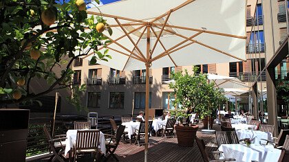 I due ristoranti dell'Hotel Terme di Merano propongono ogni giorno nuove ed originali specialità altoatesine, nazionali ed internazionali. Colazione a buffet, cucina a vista e cena gourmet con menu a scelta, menu wellness e golosi dessert. Per serate in compagnia sono aperti 7 gg su 7 anche la Lounge dei Cedri e il Bistro La Piazza.