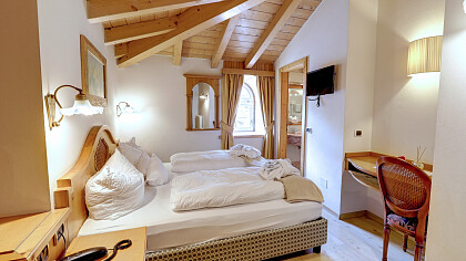 Dall’atmosfera accogliente e tradizionale, le camere e suite sono arredate in legno naturale e arricchite da dettagli rustici e raffinati, offrendo il calore tipico di una dimora alpina. Al risveglio, potrete ricaricare le vostre energie gustando una deliziosa colazione a buffet a base di torte fatte in casa, affettati, pane e yogurt.
