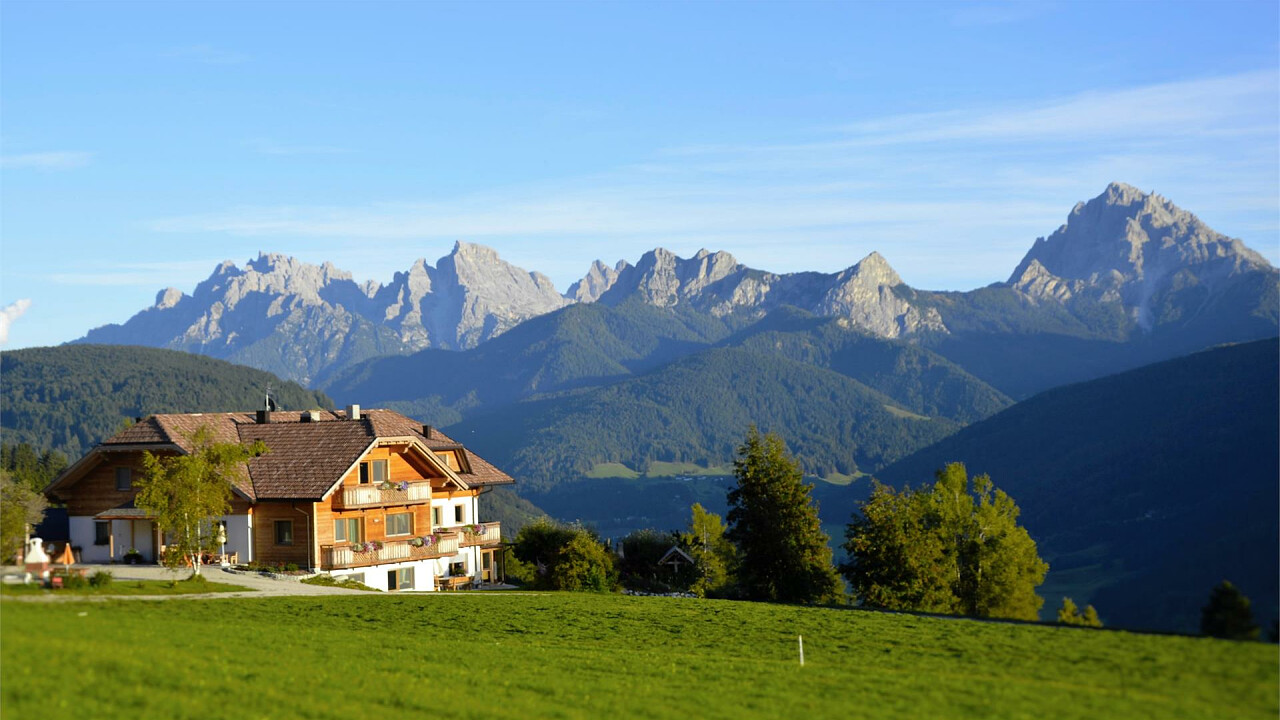 ConvinceteVi voi stessi, dall'idiliaca, tranquilla posizione, la magnifica, indimenticabile vista su oltre 20 cime dolomitiche. GodeteVi le tante ore di sole sul nostra maso situato sull'altipiano tra Tesido e Valdaora a 1400m.