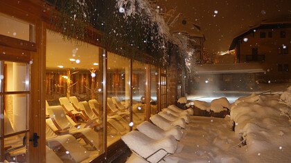 L’hotel dispone anche di un centro benessere con una bellissima piscina scoperta 4 stagioni, una piscina coperta, un'area relax con acquario marino, una zona fitness e le saune. Si eseguono massaggi e trattamenti.