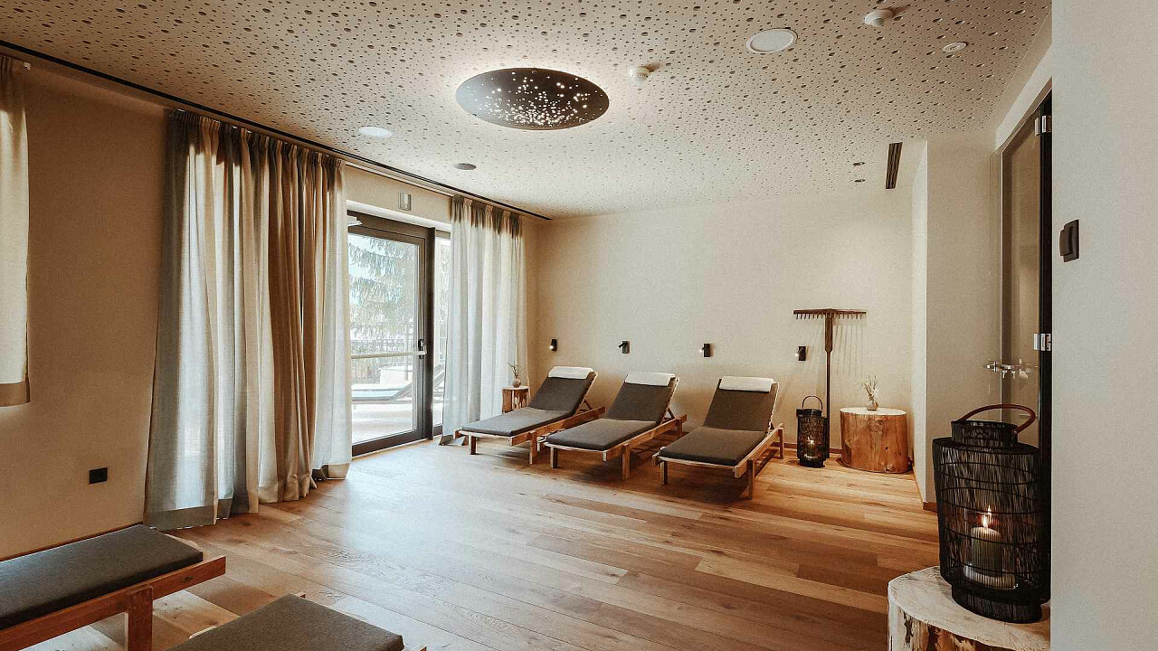 Dolci momenti di relax vi attendono al centro benessere, dove tutto ruota attorno al fën, il fieno tagliato a mano e raccolto dagli alpeggi. L’oasi del benessere è dotata di sauna panoramica e biosauna alle erbe alpine, bagno turco, docce a pioggia e fontana ghiacciata, bar con acqua di sorgente e sala relax con lettini al fieno.