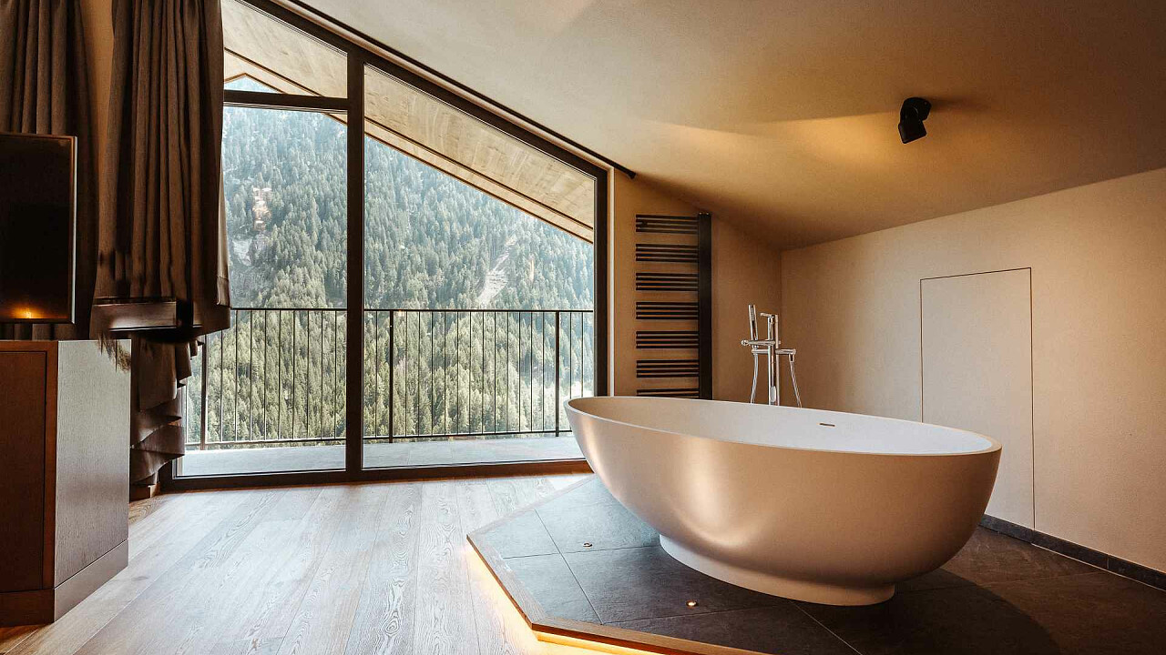 La camera gode di una vista panoramica sulla valle dal balcone e si compone di letto king size, angolo relax con divano,...