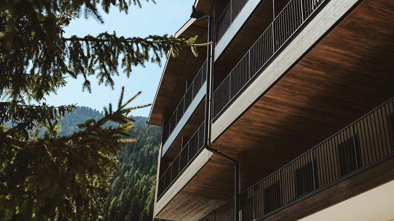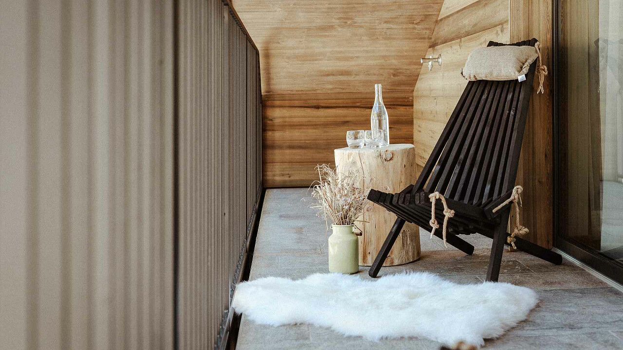 32 mq e tanto spazio per i sogni delle vacanze in Alto Adige. Balcone panoramico e zona relax, pavimento in legno...