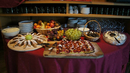 TV sat, telefono e servizi privati sono caratteristiche che accomunano tutte le stanze. La cucina, di stampo italiano-tirolese con caratteri internazionali, propone un menù di 4 portate a scelta, formaggi e dolci fatti in casa. Inoltre: cucina vegetariana, selvaggina, specialità di pesce. Bar e Stube tirolesi.