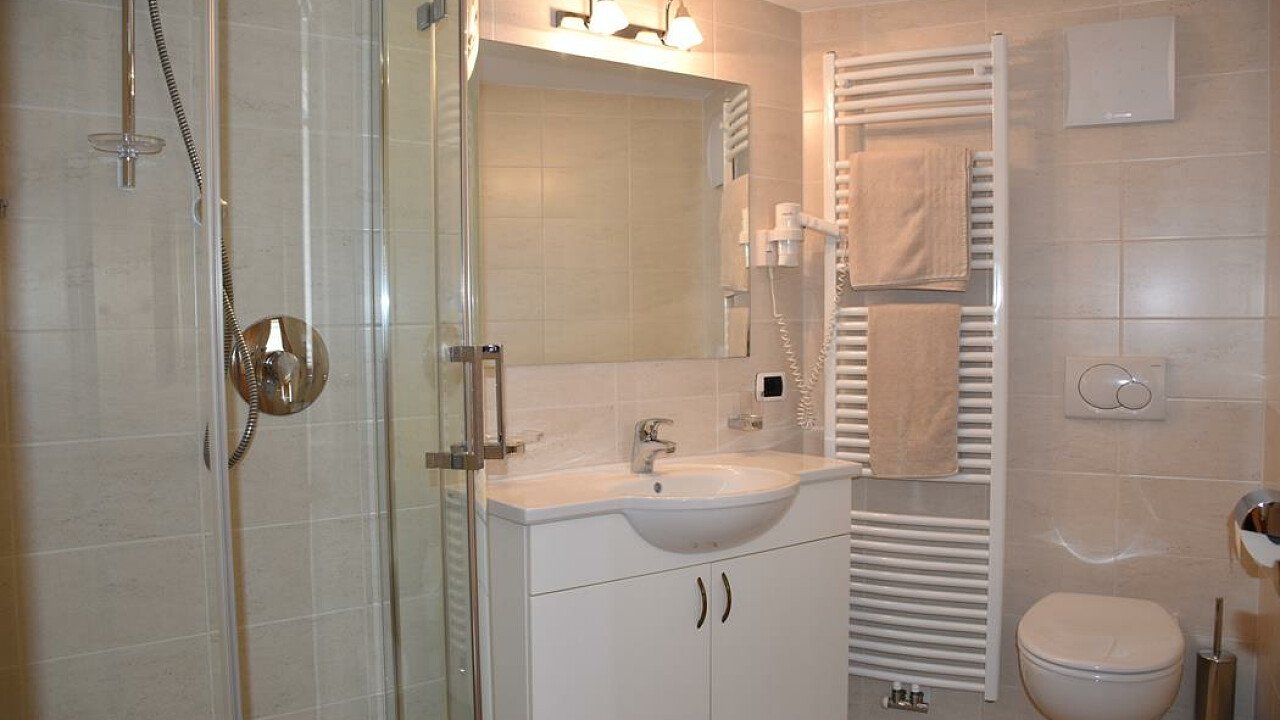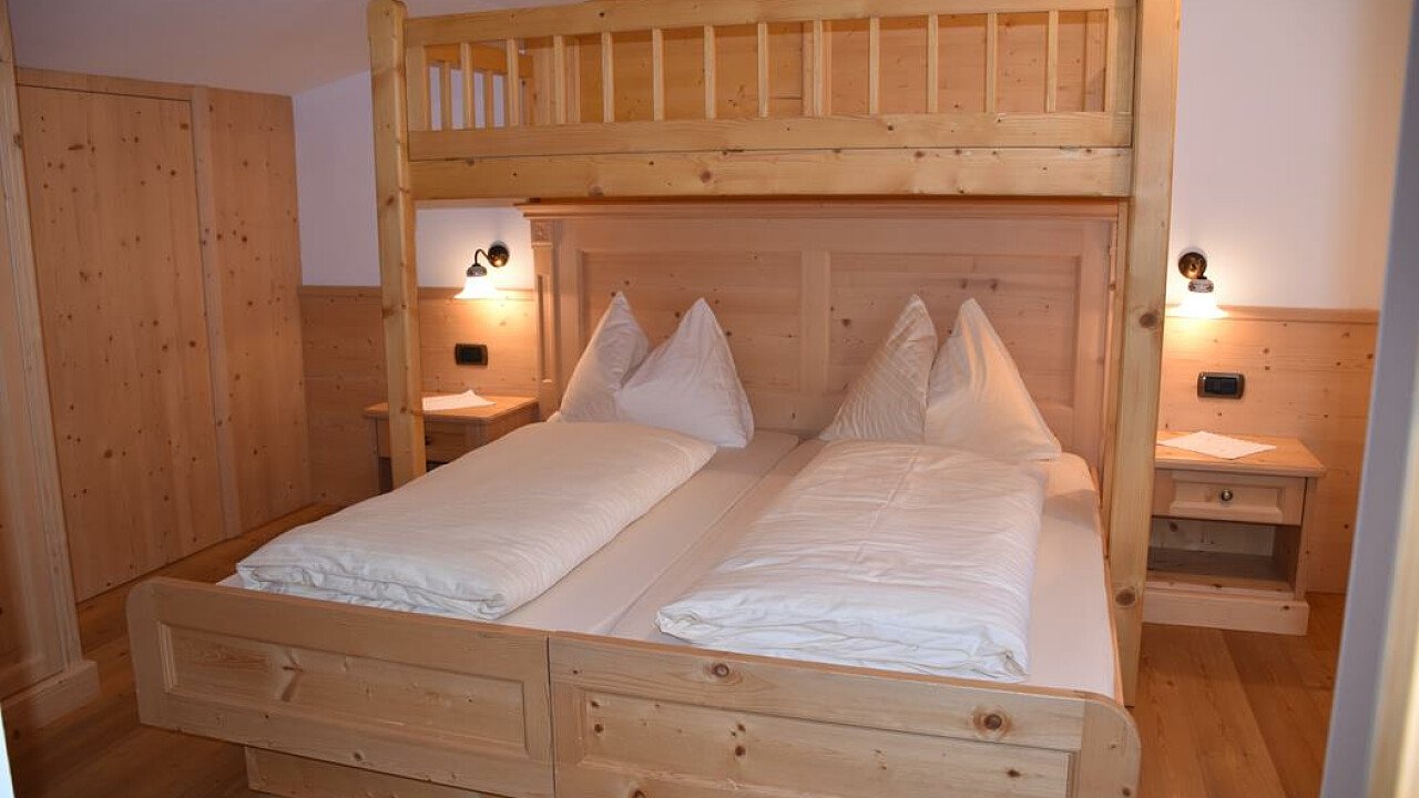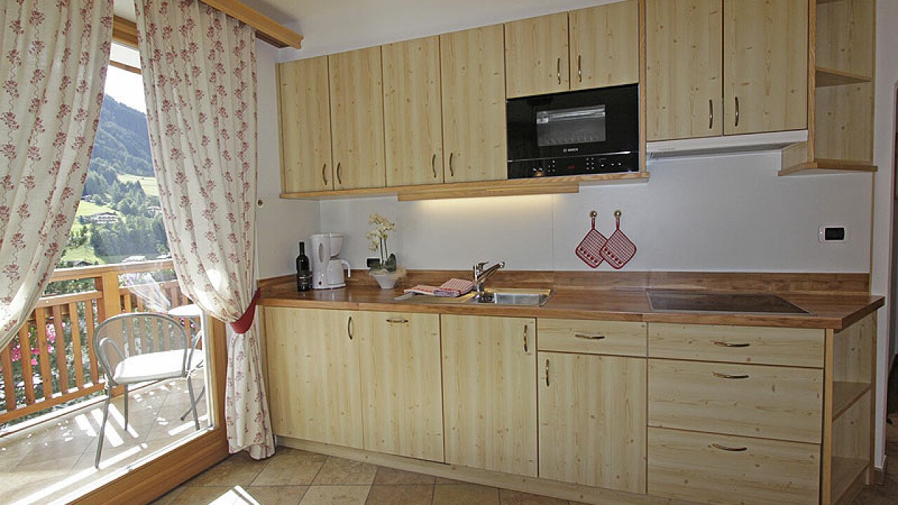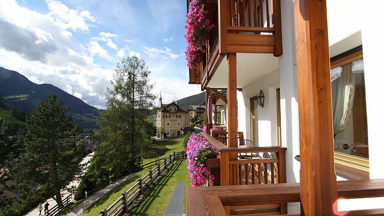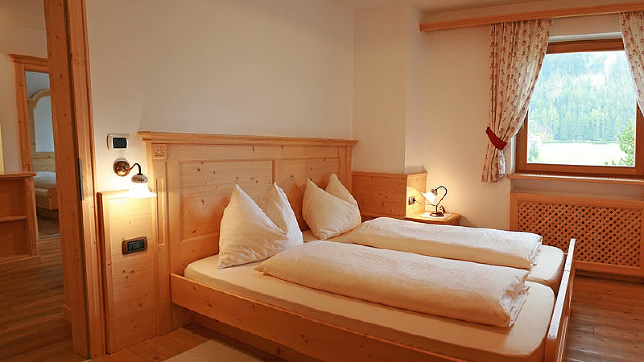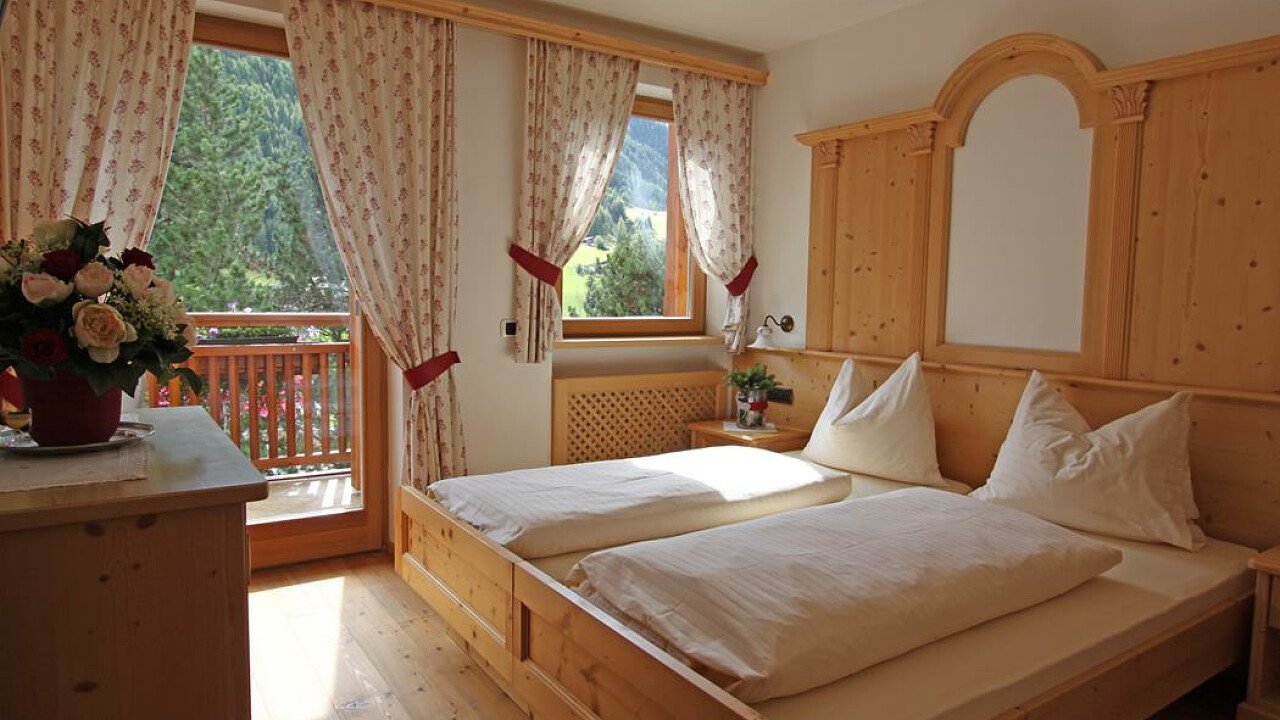 I confortevoli appartamenti in stile tirolese possono ospitare dalle 2 alle 6 persone e sono attrezzati di: soggiorno con divano letto, TV, WI-FI, angolo cottura ben equipaggiato, cassaforte, camera matrimoniale, bagno con doccia o vasca e phon. Le abitazioni al piano terra dispongono di giardino con due sedie a sdraio e ombrellone, mentre quelle al primo e al secondo piano sono dotate di balcone con una stupenda vista sulle Dolomiti e sul paese.