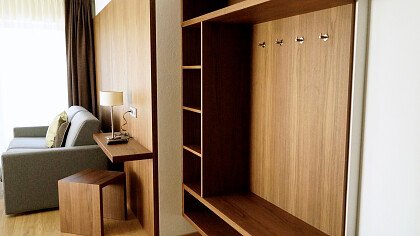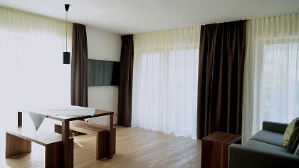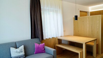Servizi inclusi nel prezzo: Wi-Fi, posto auto nel garage sotterraneo, skibus, biancheria da letto e asciugamani, deposito sci con scalda scarponi ed entrata libera alle piscine esterna ed interna di Ortisei.