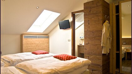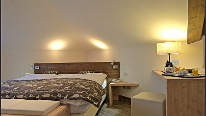 A disposizione degli ospiti sia camere doppie sia famigliari arredate in legno e servite di tutti comfort. La maggior parte con balcone.