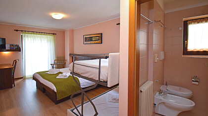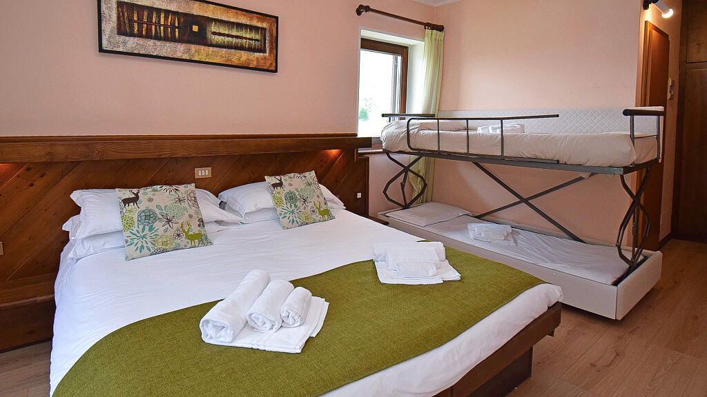 Camera con 1 letto matrimoniale/2 letti separati + 1 letto a castello con protezione anticaduta, splendida vista sul Mon...