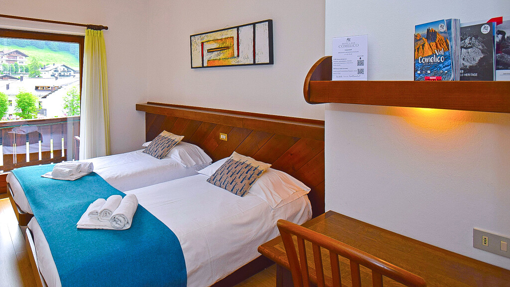 Camera Singola con finestra sul Col Quaternà e pavimento in laminato