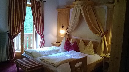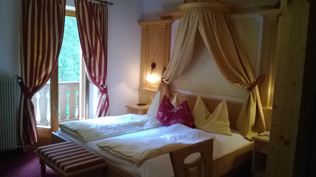Le confortevoli camere arredate con gusto tipico montano dispongono di servizi privati, phon, cassaforte, TV, Wi-Fi e terrazza.