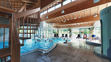 Nuova palazzina di appartamenti completamente arredati, bungalow di legno, caravan in affitto, adatto sia per coppie ed anche per famiglie che comprendono di tutto che serve per trascorrere una vacanza agevole. Attrezzati per il benessere come la piscina coperta con la cascata, la sauna, idromassaggio, bagno turco e idromassaggio, lettini solari, sala fitness, soggiorno con TV satellitare. Ingresso nella piscina pubblica nel paese con scivolo a costi minori.