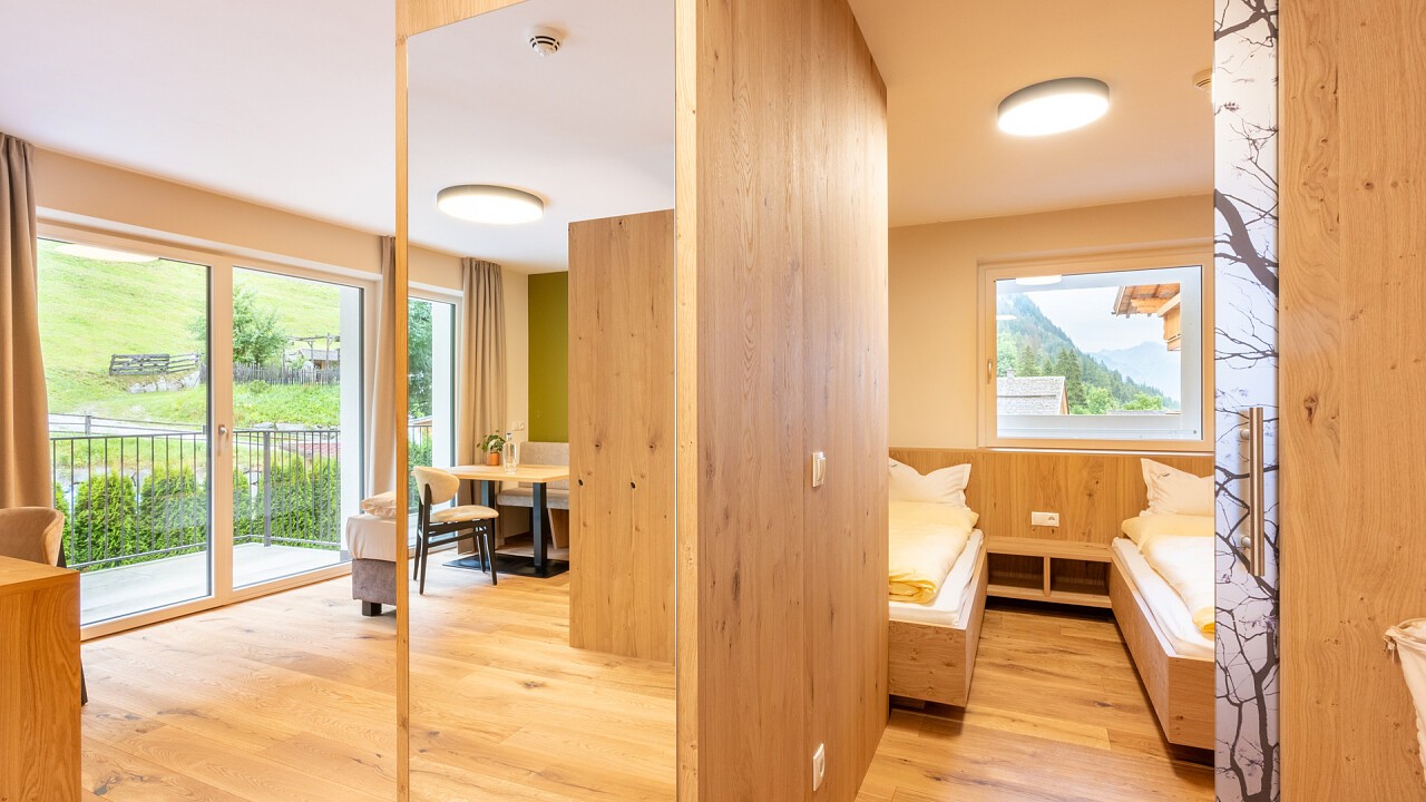 con balcone, angolo cottura, 1 letto matrimoniale, 2 letti singoli in camera separata, 1 letto aggiuntivo, ca. 40 m²