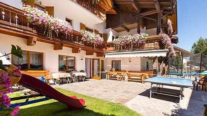 La pensione vanta un ambiente molto accogliente e un'atmosfera familiare oltre che un servizio molto attento. Le camere, tutte confortevoli e arredate in tipico stile altoatesino, sono dotate di doccia, WC, asciugacapelli, cassaforte, TV satellitare e balcone.