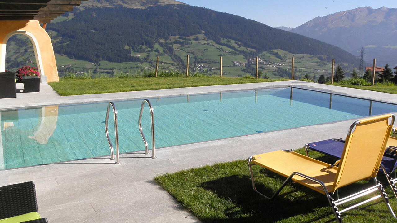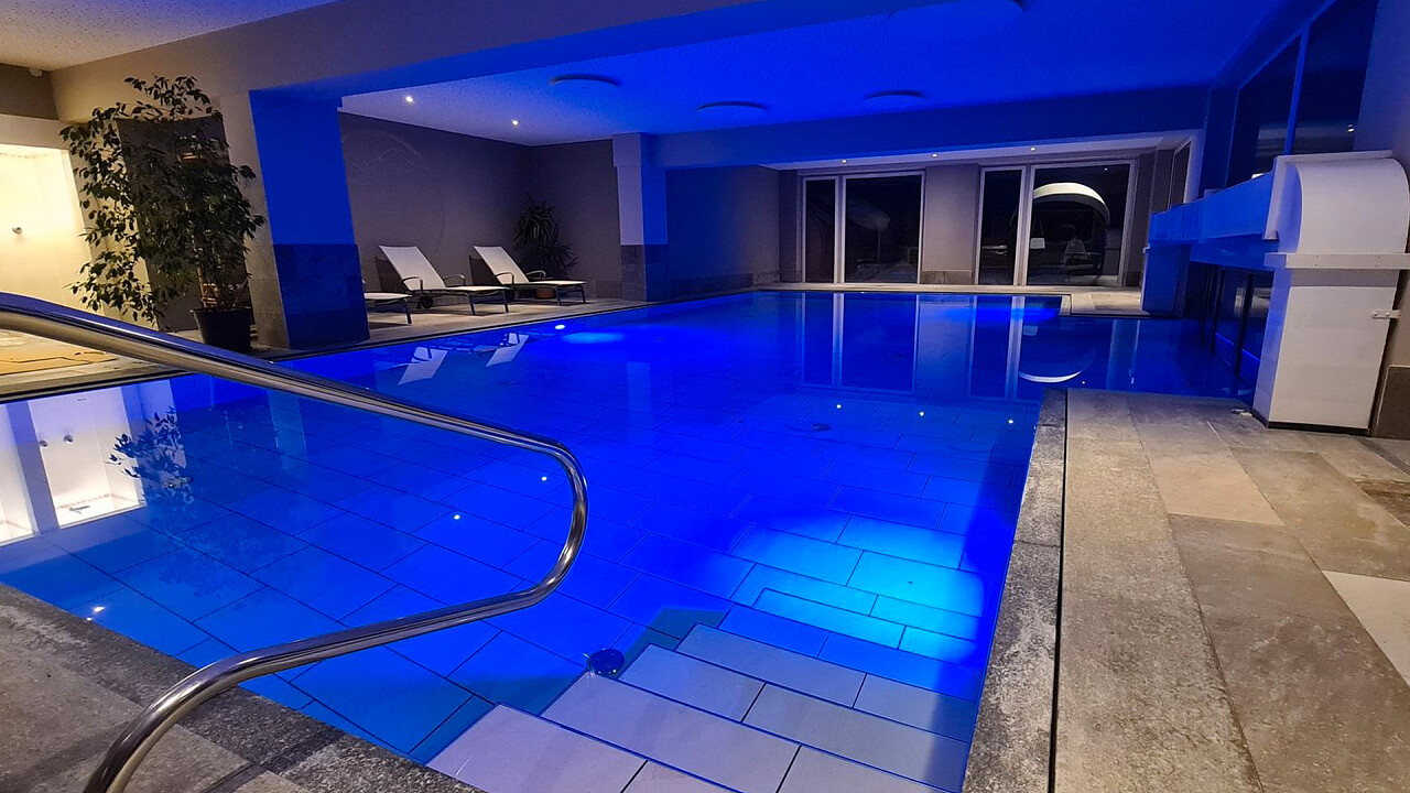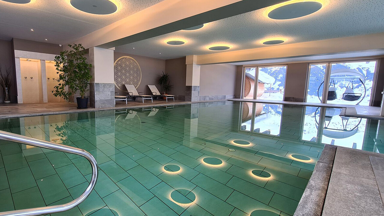 Il centro benessere comprende una vasca idromassaggio, un bagno turco e svariate saune, una delle quali è posta all'aperto in una casetta di legno con vista sulle montagne.