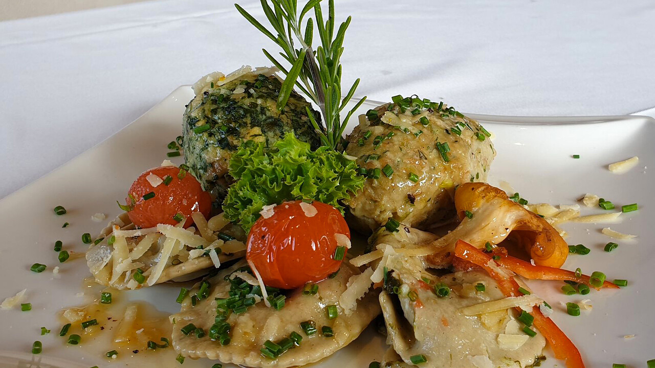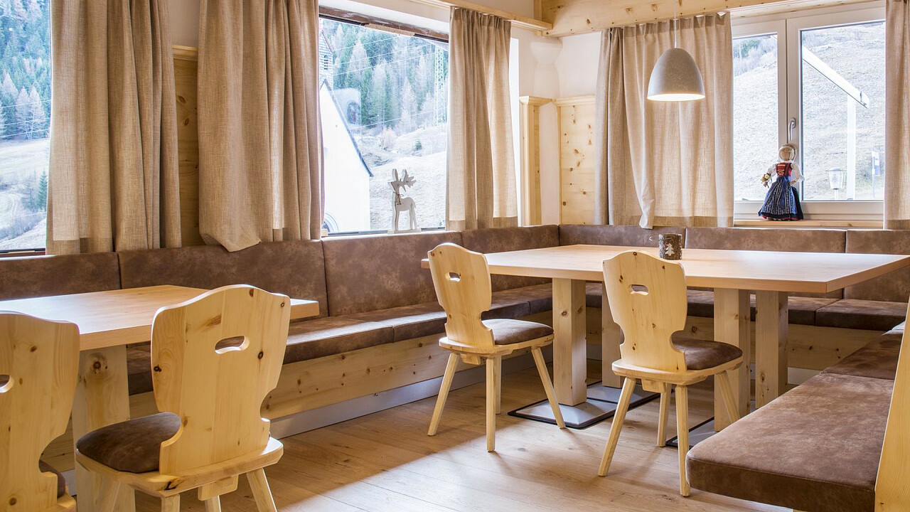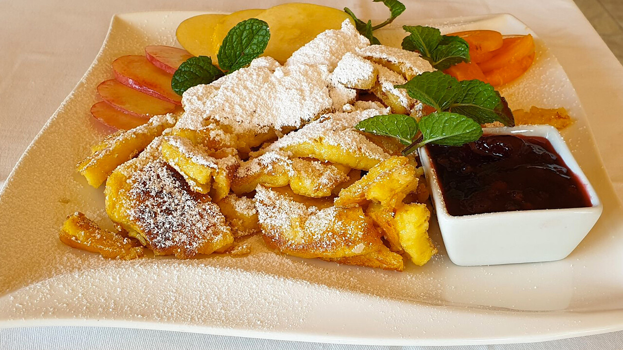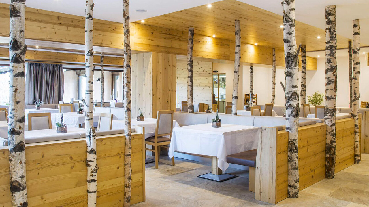 La prima colazione a buffet è composta da cibi dolci e salati, tra cui uova, formaggi e dolci fatti in casa dal pasticcere in loco, mentre il ristorante è aperto a pranzo e a cena e serve specialità dell'Alto Adige e piatti internazionali. Durante l'estate l'albergo organizza grigliate nel giardino e il menù del ristorante cambia ogni stagione.