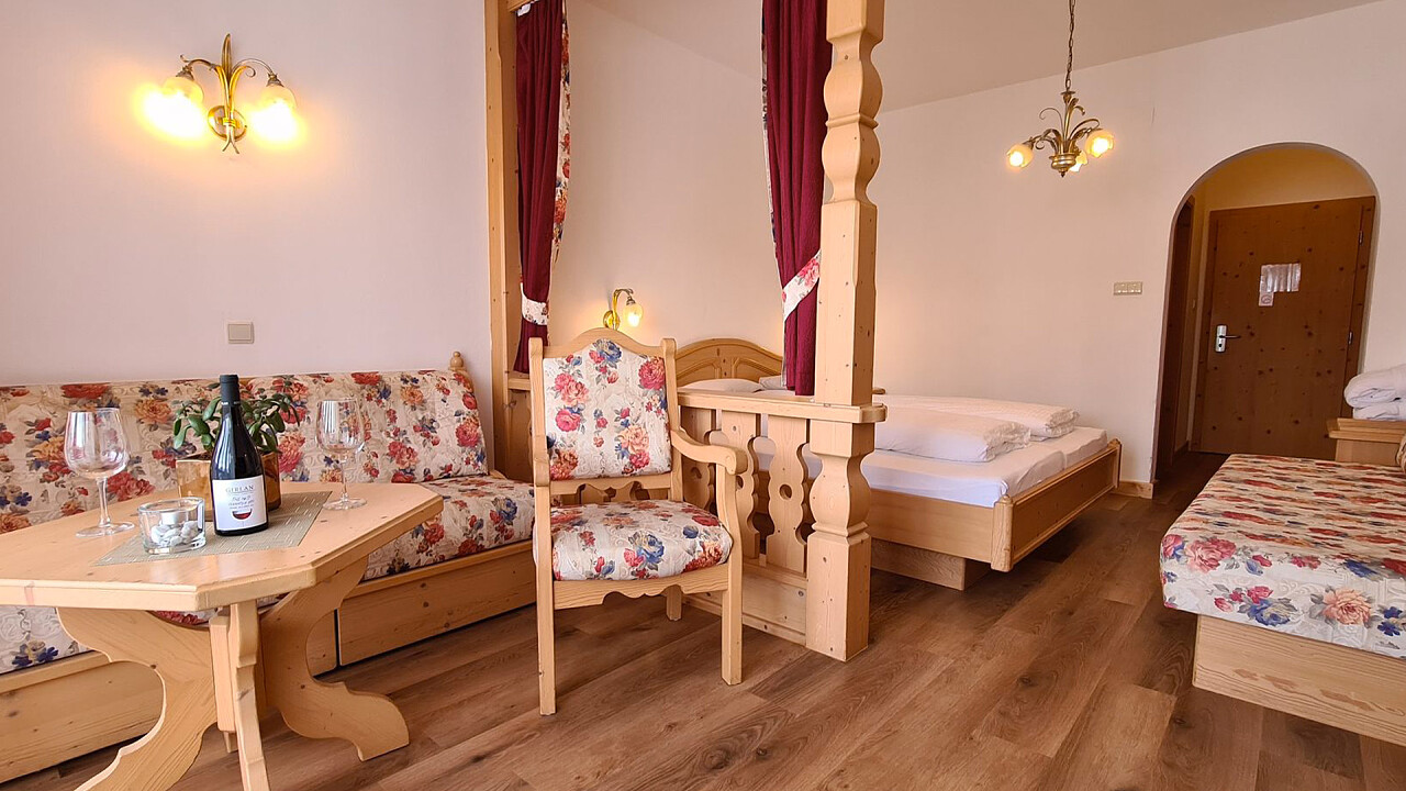 Questo hotel a conduzione familiare sfoggia lo stile rustico tipico di una proprietà tradizionale di montagna vantando numerose terrazze solarium e svariati giardini dotati di lettini, ombrelloni, un tappeto elastico e un parco giochi.