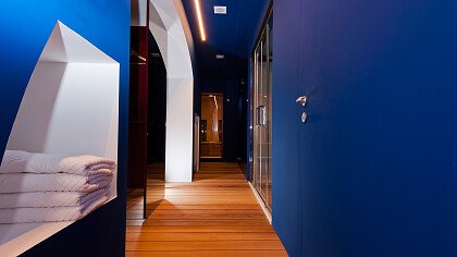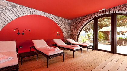 Dolci momenti di relax anche al centro benessere attrezzato di una sauna finnica, bagno turco, cabina a raggi infrarossi, docce con idromassaggio e zona relax.