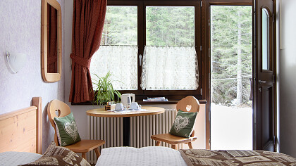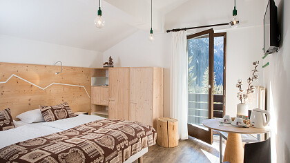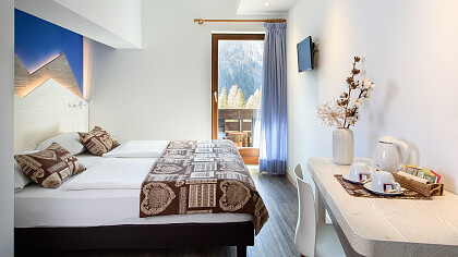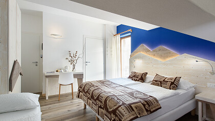 La struttura dispone di 16 camere che, abbellite in legno di cirmolo e con le testate del letto che evocano le Dolomiti, rappresentano l’amore per il territorio circostante. Moderne e funzionali, sono dotate di bagno con doccia, TV, phon, Wi-Fi, cassaforte e la maggior parte con balcone.