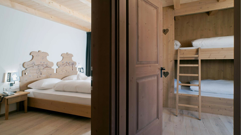 Due stanze da letto separate, di cui una con letto matrimoniale e l’altra con letto a castello tirolese. Salone con acco...