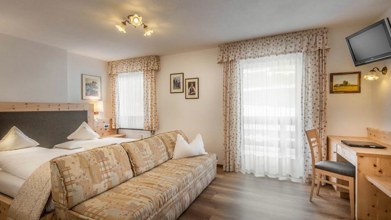 Situato in posizione tranquilla, molto soleggiata, centrale e lontano dalla strada di transito, a 400 m. dagli impianti di risalita di Piz Sorega, è la destinazione ideale per una splendida settimana bianca o una rilassante vacanza estiva in Alta Badia all'insegna di trekking, mtb, golf e Nordic Walking.