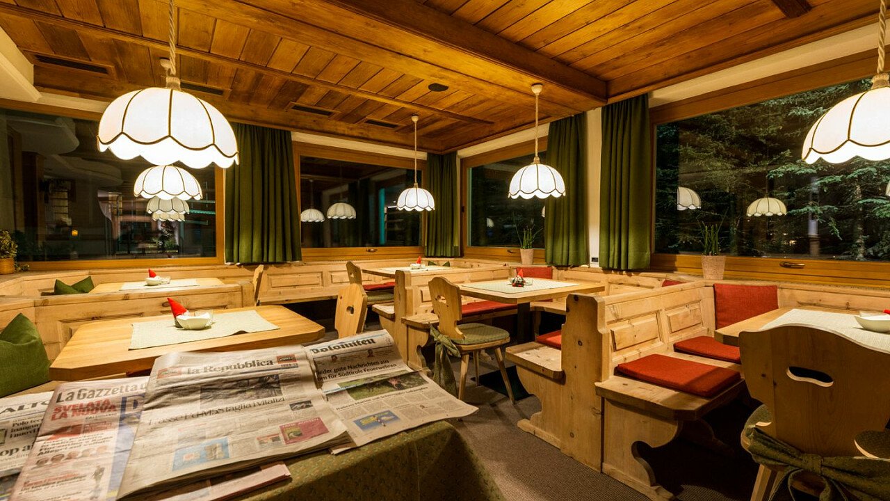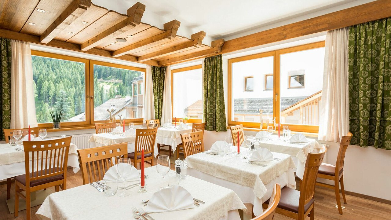 La cucina è particolarmente curata e propone piatti tipicamente italiani e pietanze ladine tipiche della zona. Ogni settimana l'accogliente taverna ospita una cena ladina e la stube l'aperitivo di benvenuto.