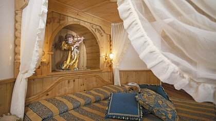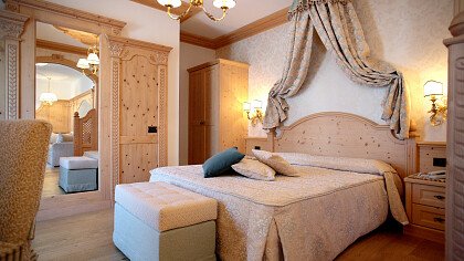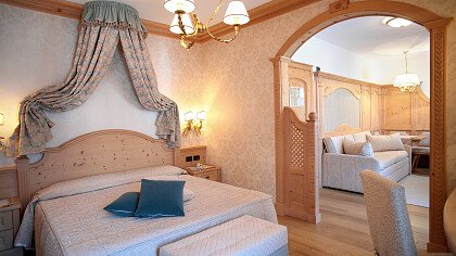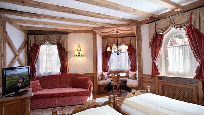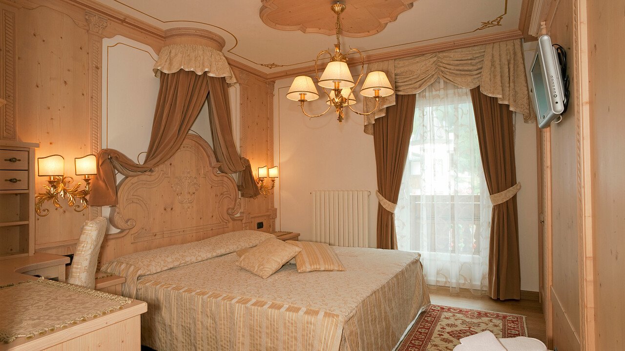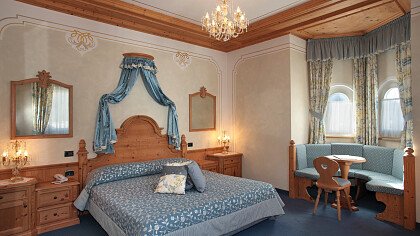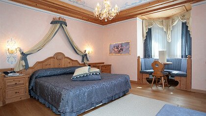 L'hotel è arredato in tipico stile alpino, offre un ambiente raffinato e accogliente. Gli ospiti hanno a disposizione tre tipologie di camere, le romantic, le elegance e le junior suite. Ogni camera è dotata di bagno con doccia, asciugacapelli, telefono, Tv, minibar, cassaforte e Wi Fi. La maggior parte con balcone con vista panoramica. Le Junior Suite, ideali per famiglie, dispongono di salotto separato, due TV, doppi servizi.