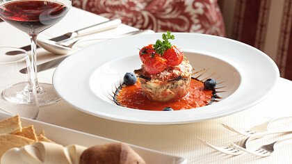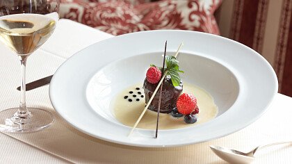 Il ristorante offre piatti della cucina locale, internazionale e ricette originali realizzate con cura e professionalità, il tutto accompagnato da un'attenta selezione di vini. Stube, ricca prima colazione con angolo biologico, cene a lume di candela, menu per i bambini.