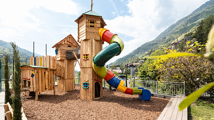 L’hotel a 5 stelle della Val Passiria è la scelta ideale anche per una vacanza in famiglia. Tanti sono i servizi a loro disposizione: Acqua Family Parc, Family Spa con area con saune per famiglie (dress on) e piscina interna con vasca idromassaggio riscaldata, piscina esterna con grande scivolo e bar nell’area piscine, sale gioco, Mini club (per bimbi dai due anni) aperto tutto l’anno con giochi, divertimento e pranzo gratuito, campi da calcio e da beach volley con partite assistite, noleggio di scaldabiberon, fasciatoi, babyphone, passeggini e zaini porta-bambini, Eco Quad adventure, wild river tubing, canyoning, rollerball, dry ice e climbing (a pagamento) e nuovo Action Parc con trampolini interattivi, ValoJump, ValoClimb, iWall, palestra da bouldering interattiva e molto altro.