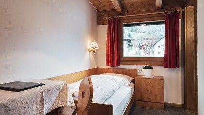 Dall’atmosfera accogliente e familiare, il garni offre camere doppie, singole e un appartamento. Le camere, arredate con gusto e attenzione ai dettagli, offrono un ambiente accogliente e rilassante, perfetto per rigenerarsi dopo una giornata di attività all’aria aperta. Ogni stanza è dotata di tutti i comfort moderni, senza però perdere quel tocco rustico che rende l’agriturismo unico. L’appartamento è composto da una camera matrimoniale, un soggiorno, un bagno e una cucina.