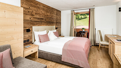 Con i suoi ca. 70 m² la Suite Panorama è ideale per 2 fino a 4 persone. La 3. e 4. persona soggiornano in letto aggiunto...