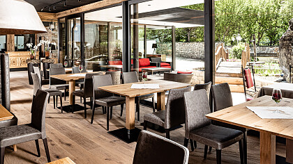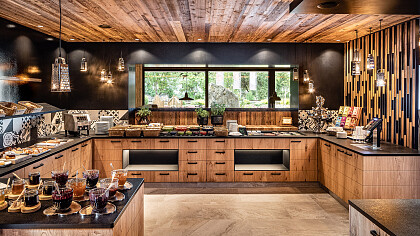- Vitalizzante buffet di prima colazione dalle ore 07.30 alle ore 11.00 con prodotti naturali, spremute fresche e “angolo bio” con marmellate fatte in casa, miele della nostra zona, grande offerta di muesli, frutta fresca, dolciumi fatti in casa, prosecco, centrifughe fresche, uova in tutte le varianti, vasta scelta di olii e aceti, ecc.