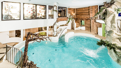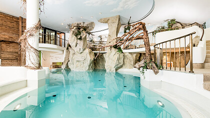 - Piscina coperta dalle ore 08.00 alle 20.00 incastonata nella roccia, riscaldata a 30°C con cascata e getti d´acqua