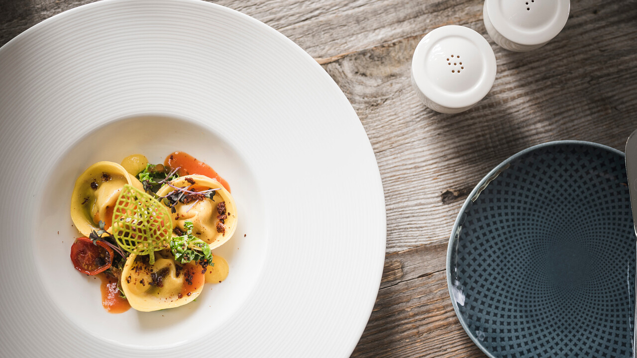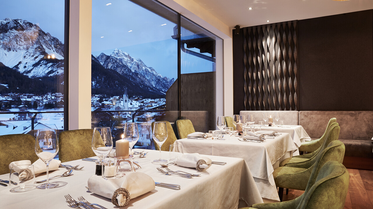 Il nuovo ristorante panoramico con "live-cooking" propone una cucina d’eccellenza con le pietanze prelibate, creative e di alta qualità della Pensione Gourmet ¾ (ricca prima colazione, buffet wellness a pranzo, merenda con dolci appena sfornati e cena gourmet). Il tutto abbinato alle oltre 500 etichette di vini altoatesini, italiani e internazionali. Su richiesta anche piatti vegetariani, vegani e a basso contenuto calorico. Il bar dell’hotel è il posto perfetto per un aperitivo in compagnia e per godersi gli spettacolari cocktail show.