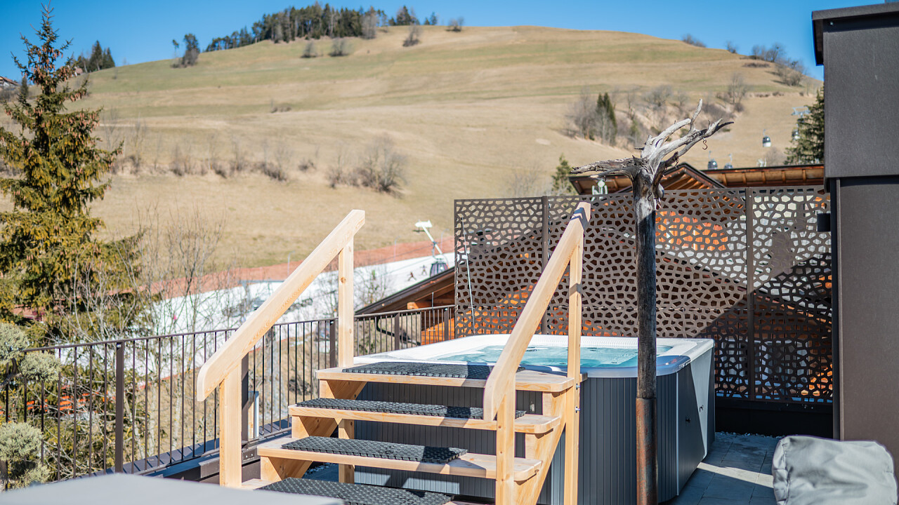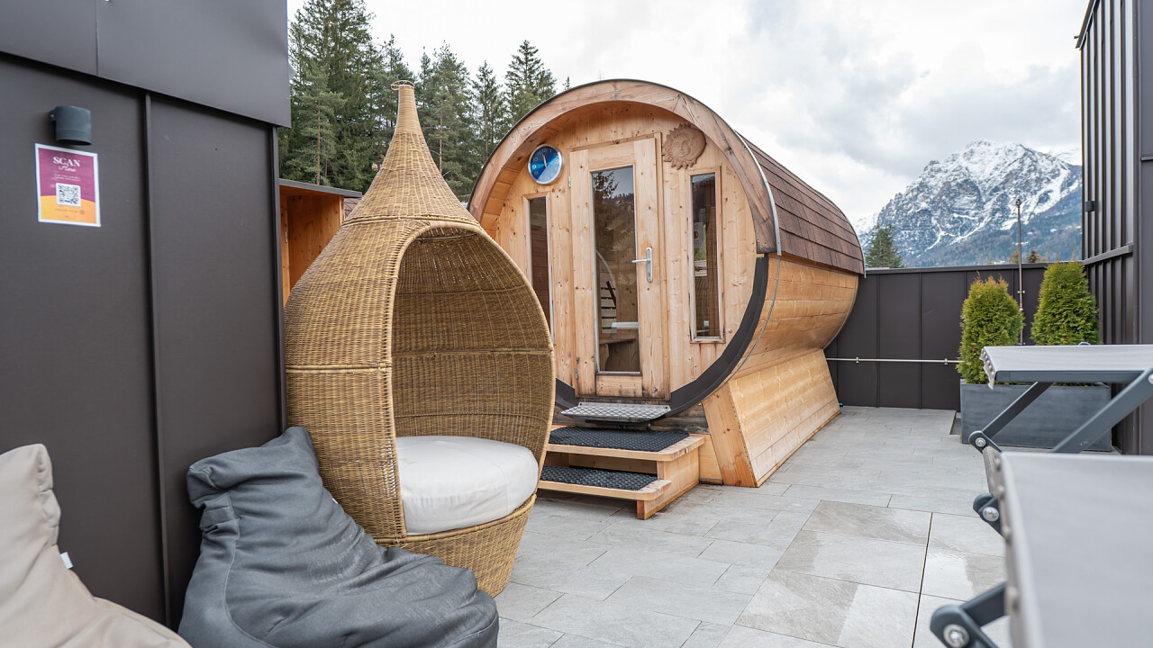 Gli ospiti si possono rilassare sulla terrazza panoramica con sauna a botte, jacuzzi e area relax e nel centro benessere dotato di sauna finlandese, idromassaggio, bagno turco, docce tropicali, sauna bio alle erbe aromatiche e percorso Kneipp.