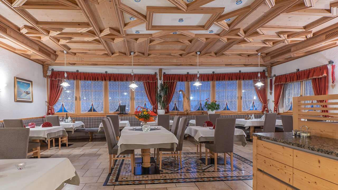 Al ristorante lo Chef vi delizierà con le sue ricette locali e internazionali a base di ingredienti freschi e stagionali aromatizzati con le spezie dell’orto. Mentre al mattino potrete approfittare di un’abbondante colazione con torte e crostate fatte in casa con farina biologica, alla sera vi attende un menù a 4 portate a scelta con buffet di verdure fresche, verdure grigliate e antipasti. Su richiesta menù vegetariano o celiaco. Inoltre, cena di gala la domenica con aperitivo di benvenuto, in inverno spuntino pomeridiano con dolci e cena ladina con specialità locali e degustazione di grappa, mentre d’estate una volta alla settimana grigliata in giardino con bevande incluse e degustazione di grappa.