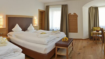 Quale membro dei Family Hotels Alto Adige, l’albergo è adatto alle famiglie e dispone di camere doppie, triple o quadruple con bagno con vasca o doccia, phon, teli, ciabatte, accappatoi, TV-sat, frigo e cassaforte. Molte dispongono di balcone.