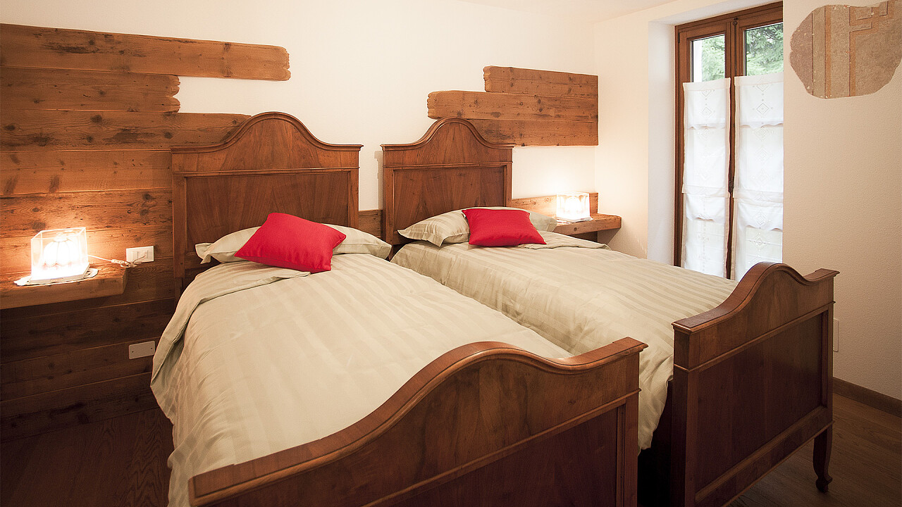 Il b&b dispone di quattro camere, ognuna dedicata a una montagna del territorio, con affacci incantevoli sulle vette circostanti. Gli ambienti, restaurati con cura, conservano il fascino della tradizione grazie ai letti d’epoca e agli affreschi originali, uniti al comfort di bagni moderni e ambienti accoglienti. Ogni soggiorno include una ricca colazione, con prodotti fatti in casa come marmellate artigianali, pane appena sfornato, torte, crostate, brioches e yogurt, per iniziare la giornata con gusto e semplicità. Per chi cerca momenti di benessere e tranquillità, la zona relax con sauna e doccia è il luogo perfetto dove rigenerarsi dopo una giornata all’aria aperta.