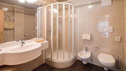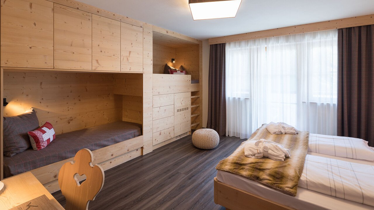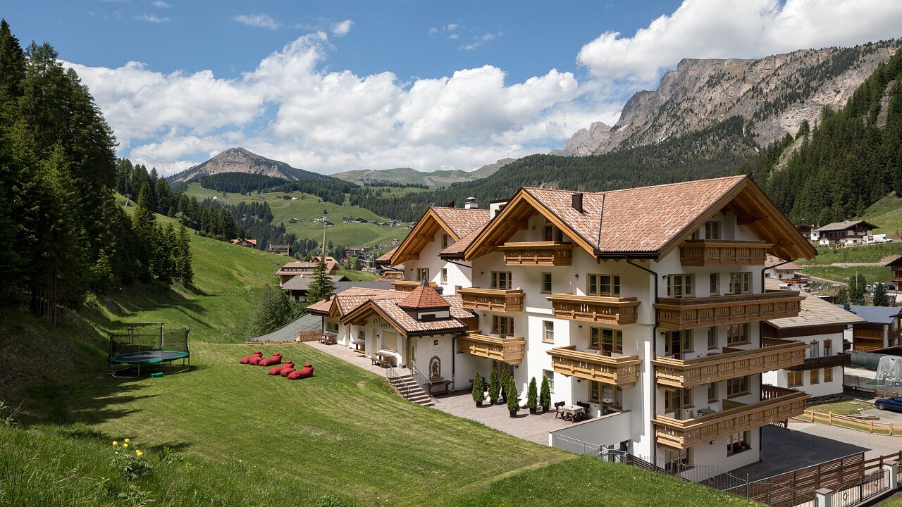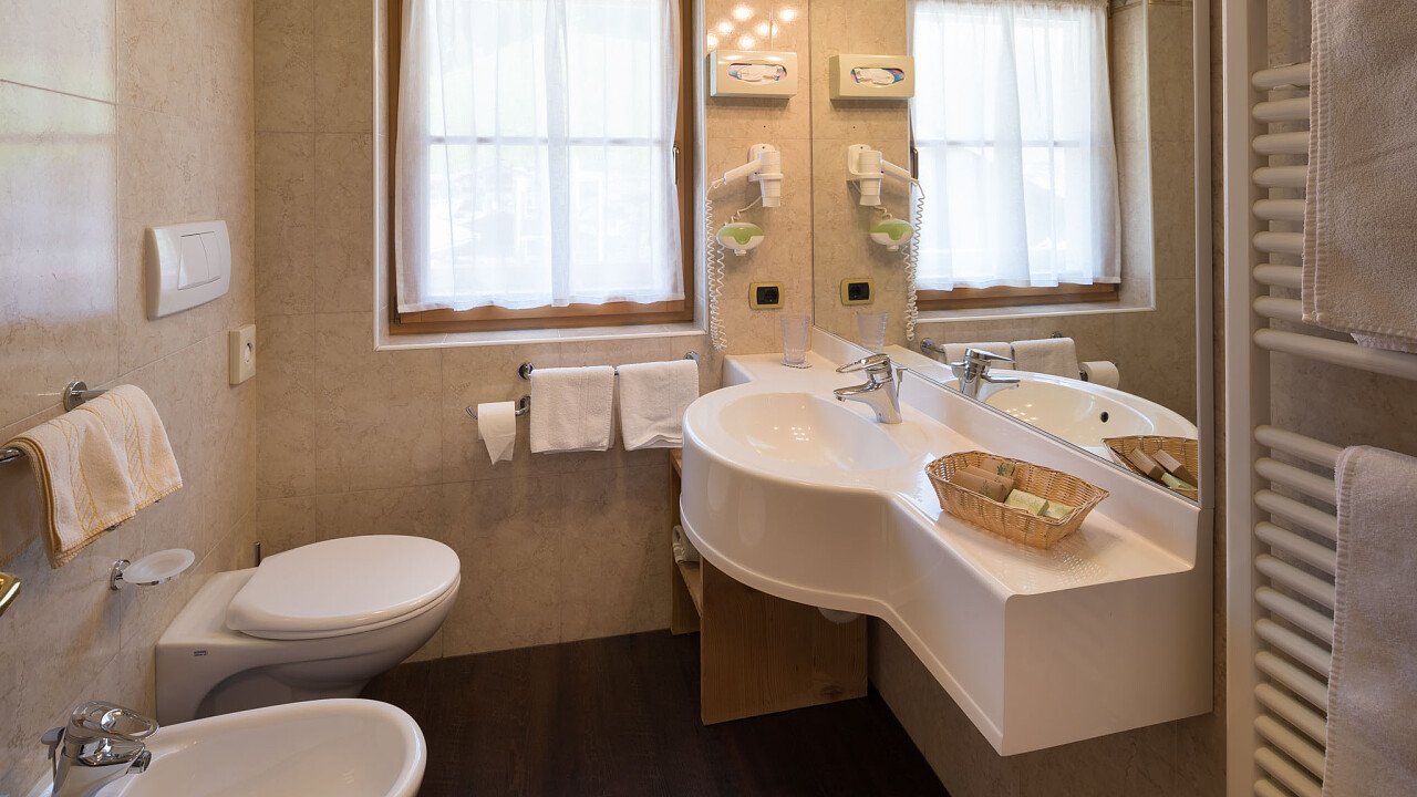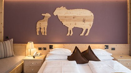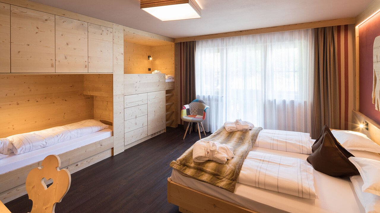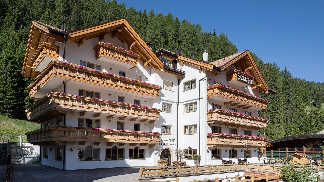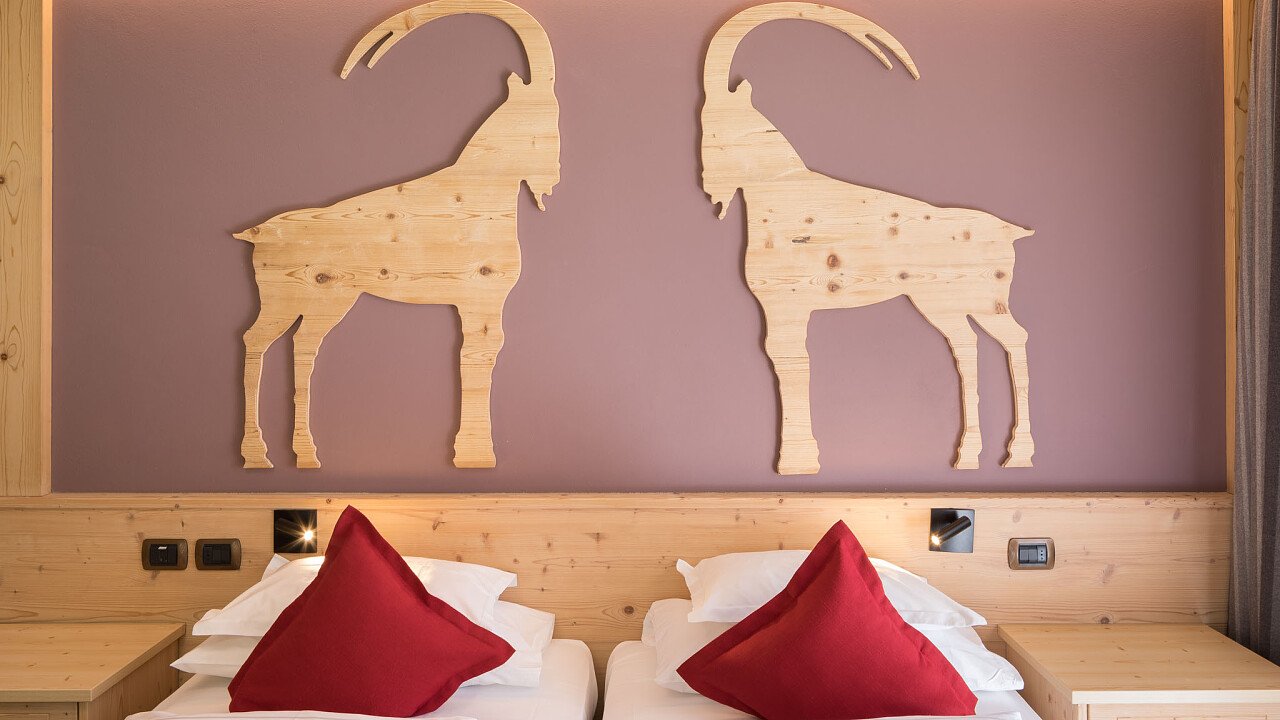 L’hotel a 4 stelle offre un’atmosfera rilassante e confortevole. Le camere sono molto curate, arredate con toni caldi in stile alpino, e dotate di bagno con doccia o vasca, WC, bidet, asciugacapelli, TV sat, telefono, cassaforte, angolo lettura e balcone con vista panoramica.
