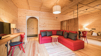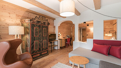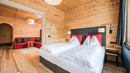 Le camere e gli appartamenti del Berghotel Sexten sono pensati per accogliere ogni ospite nel massimo comfort. Con 72 camere di varie categorie e 10 appartamenti, si spazia dalla camera doppia standard di 23 m² alle spaziose suite e Family Studio di 65 m², tutte dotate di balcone o terrazza con vista sulle Dolomiti. Gli ambienti comuni, con antichi oggetti d’arredo, stufe di maiolica e caminetti, creano un’atmosfera accogliente e invitano alla convivialità, mentre grandi vetrate panoramiche lasciano entrare la luce e la natura, rendendo ogni momento speciale.