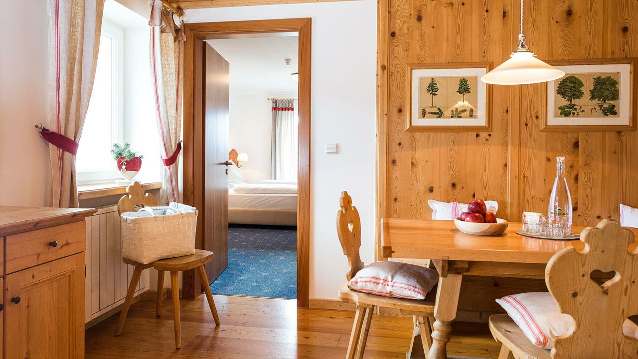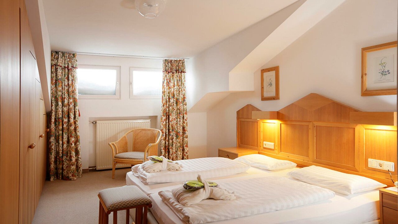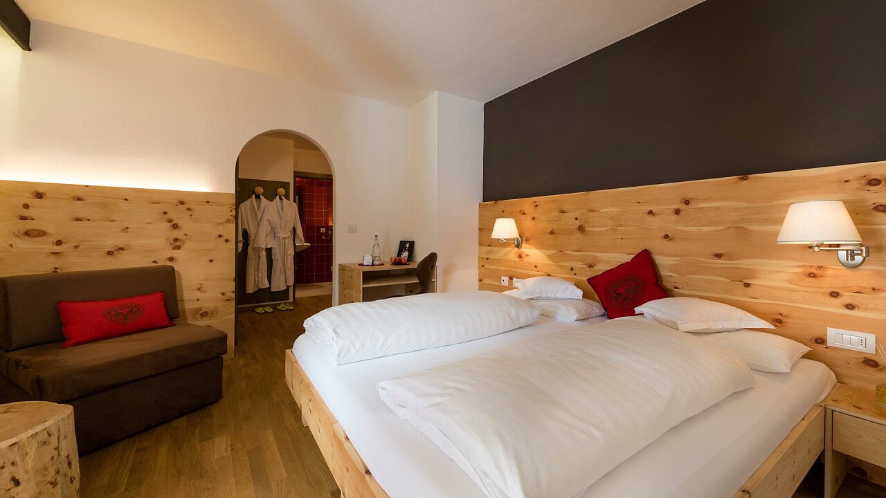 L’hotel a conduzione famigliare si presenta come una tipica struttura di alta montagna arredata secondo lo stile alpino, ma con uno slancio internazionale. L’ambiente esclusivo e avvolgente offre delle raffinate camere e suite dotate di ogni comfort: bagno con vasca o doccia, TV, telefono, borsa wellness, cassaforte, phon, Wi-Fi e balcone.