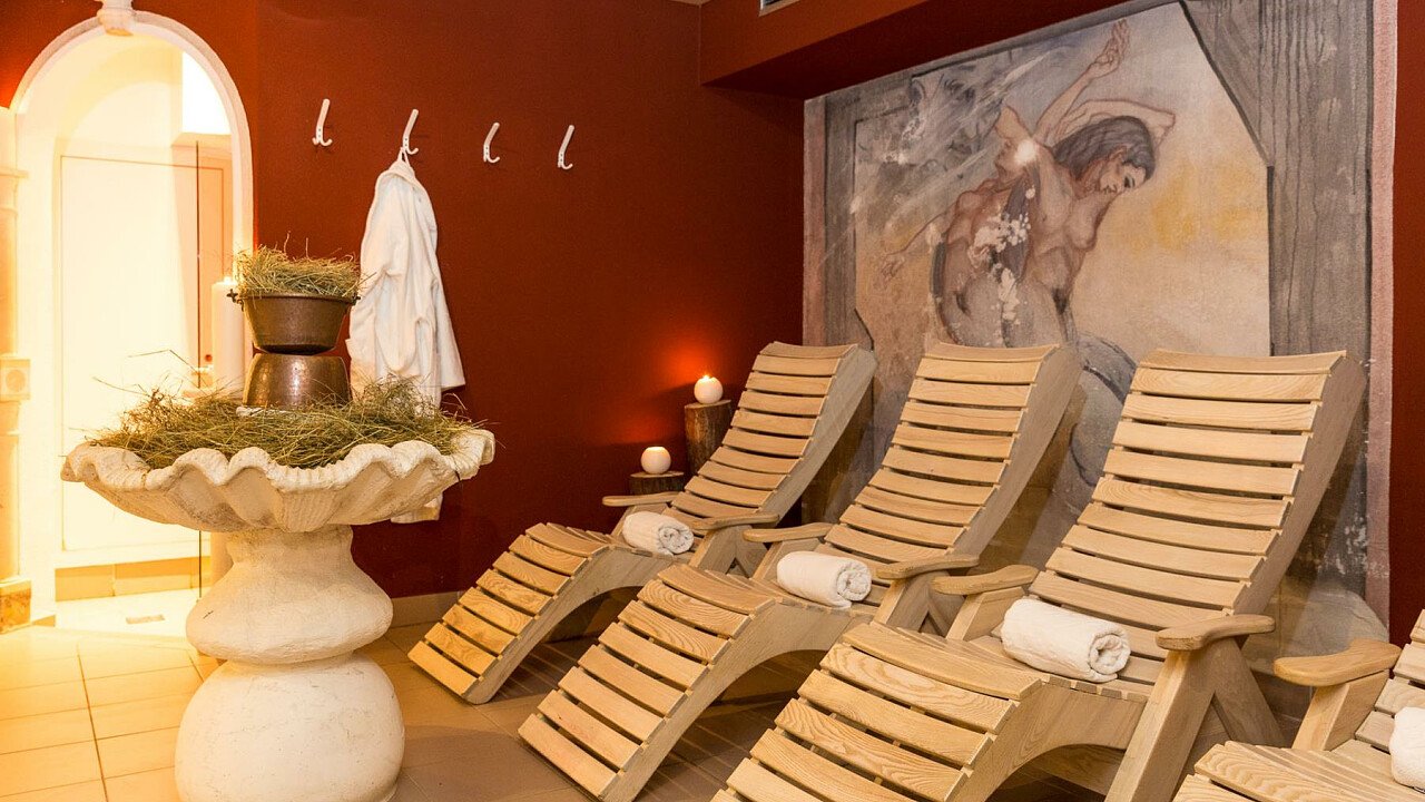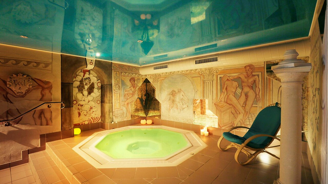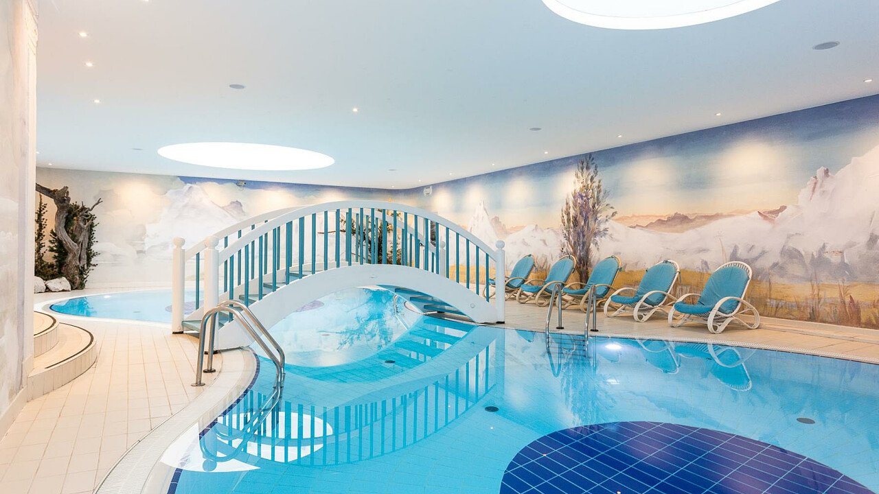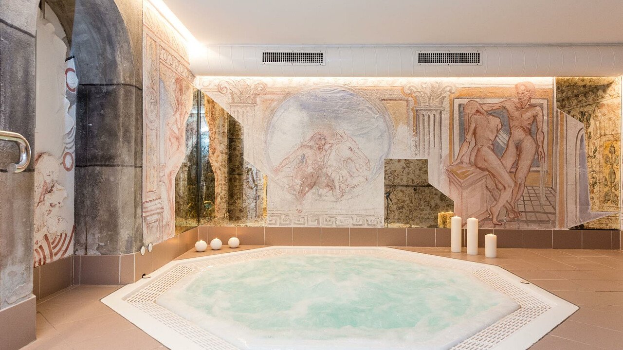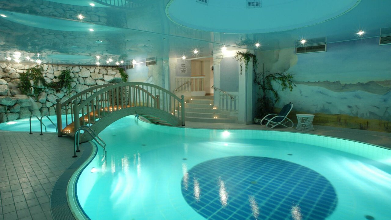 Relax e benessere alla Spa alpina attrezzata di: piscina coperta tra le rocce, bagno turco, sauna, idromassaggio, sauna finlandese, area relax, palestra e centro beauty con trattamenti e massaggi.